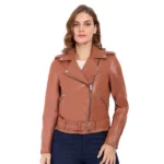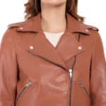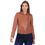 Full Sleeve Brown Designer Ladies Leather Jacket